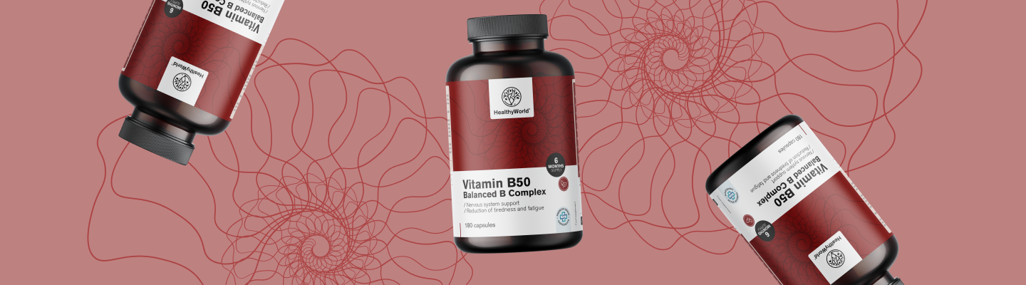 Vitamin B50 kompleks vsebuje 7 vitaminov iz skupine B, ki so vsestransko pomembni za naše telo, saj prispevajo k / imajo vlogo pri: